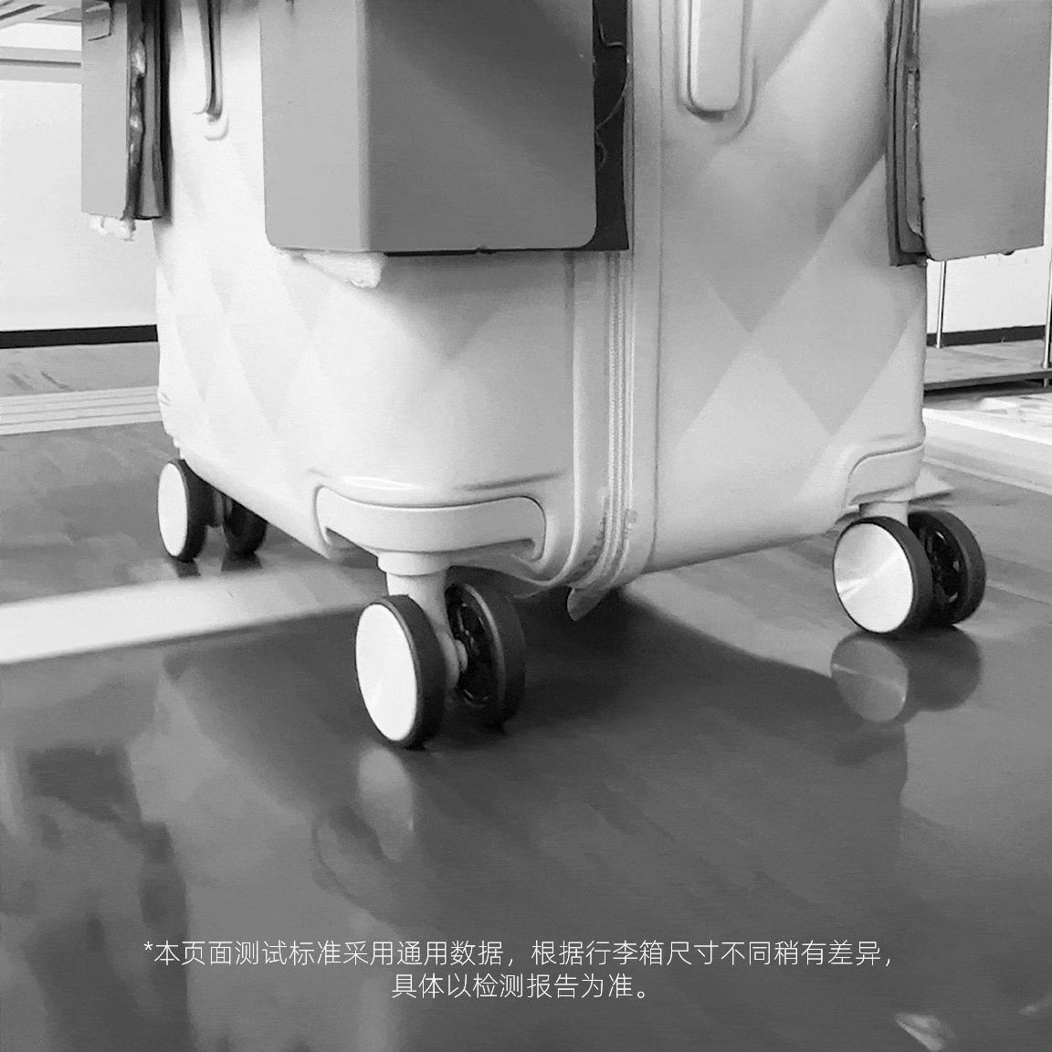 箱体及各固件不塌陷不变形,拉杆拉合顺畅无卡阻。轮子灵活转动,不松脱不断裂。